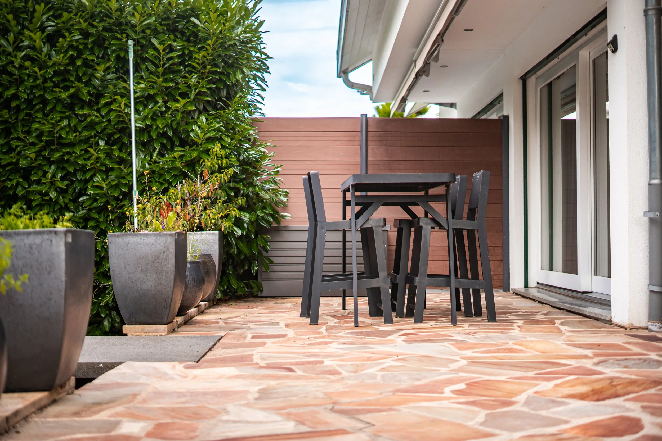 * Terrasse en pierres naturelles, parfaite pour les moments de détente